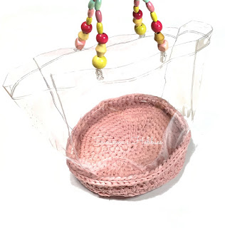 かぎ針編み(Crochet)「ダイソーさんの透明バッグ素敵化計画第2弾、丸底マルシェバッグに改造成功!! Crystal Beach Bag」